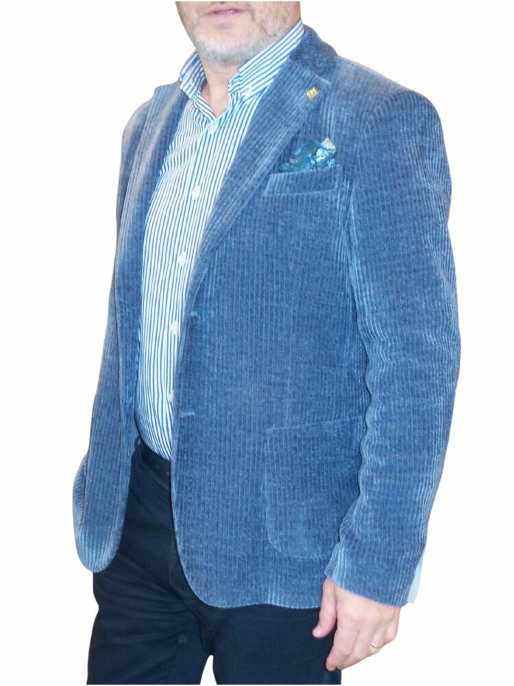 • Giacca Uomo Cauteri Azzurra in Velluto – Elegante, Sartoriale, Made in Italy