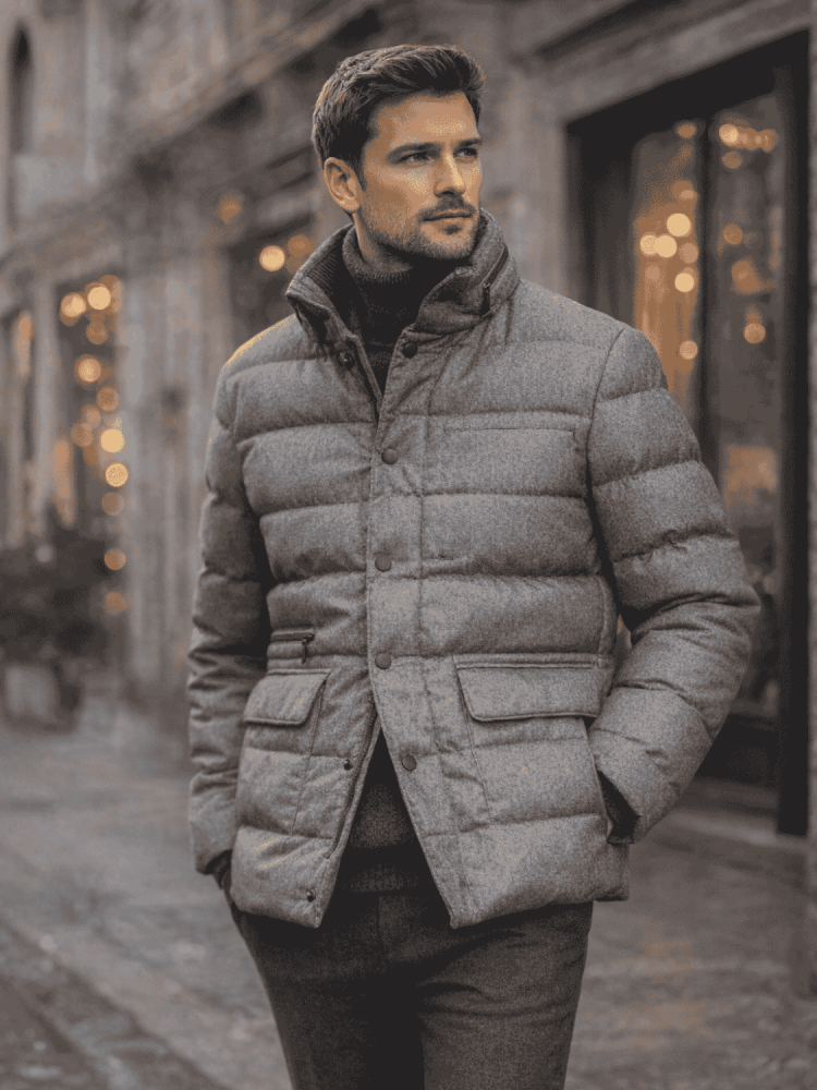 Giubbotto uomo grigio dallo stile elegante e urbano, perfetto per la stagione fredda